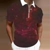Pánské tričko Polo Ležérní Zip Krátký rukáv Módní Ležérní Zip Léto Jaro Běžný střih 3D Potisk hvězdné oblohy tričko