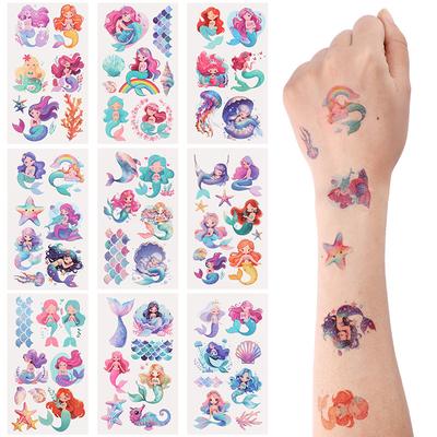 10 listů Kreslené Roztomilé Tetovací Nálepky Mořská Panna Na Ruku Obličej Tělo Dočasné Dekorativní Tetovací Nálepky Dívčí Kreativní Párty Dárky