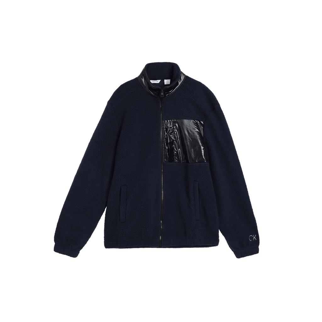 Calvin Klein Jeans Autumn And Winter Letter Logo Jacquard Stand Collar Drop Shoulder Long Sleeve Fleece Jacket Unisex Jacket Dark-Blue 40KC422-CEF