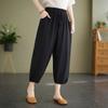 Women's Summer Ice Silk Cotton-Linen Casual Wide-Leg Lantern Seven-Point Pants Plus Size Loose Elegant Versatile