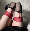 Red edge black fake suspenders knee socks stockings sexy lace bow thigh socks sex stockings