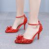 9cm Silver Pointed Toe Hollow Sandals White Rhinestone High Heel Sandals Large Size Bride Wedding Photography High Heels