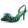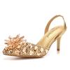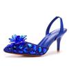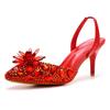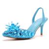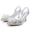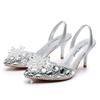 7cm Silver Light Mouth Pointed Sandals Rhinestone Glass Flower Thin Heel Sandals Large Size Wedding Shoes Bride Wedding Women's Shoes