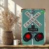 Železniční přejezd Dvě 2 Koleje Znamení Cín Vzhled Vintage Garáž Bar Dekorace