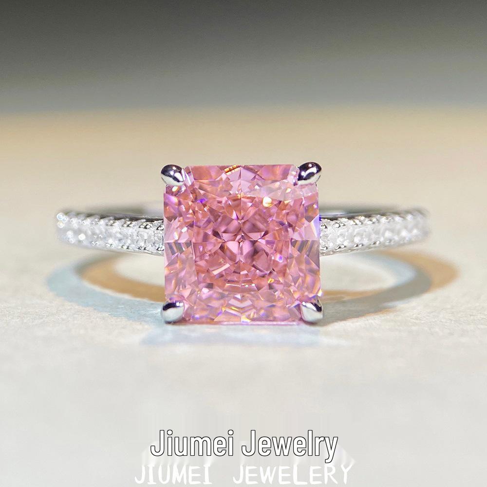 Prsten S925 Sterlingové stříbro Třešňově růžový drahokam & Vysoce uhlíkový diamant Ledový květinový výbrus
