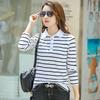 Women's T-shirt Spring and Autumn New Fashion T-shirt Long-sleeved Striped Top Lapel Bottoming Shirt Cotton Turtleneck Top