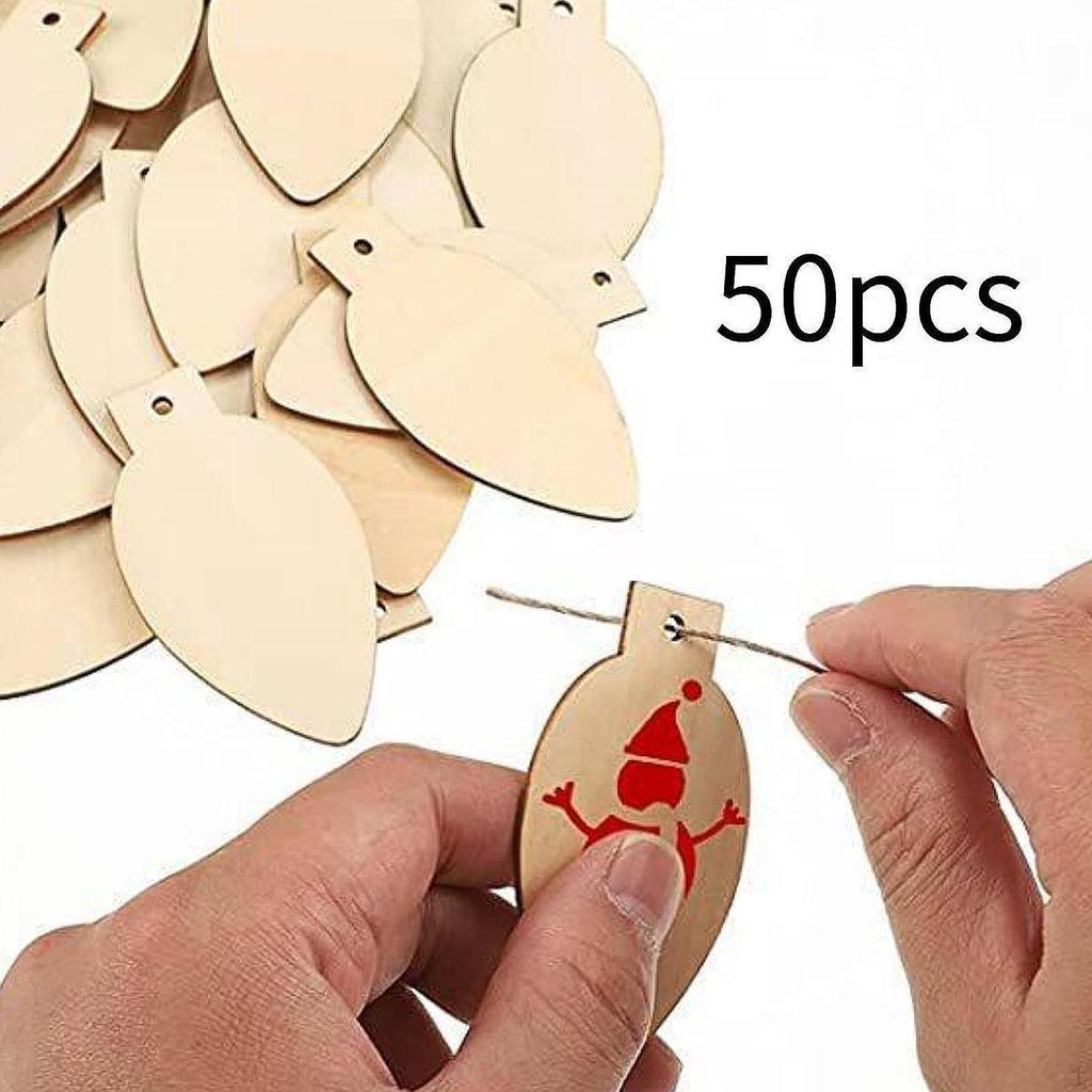 50Pcs Unfinished Hanging Wood Sign,Wooden Christmas Festival Decoration,Blank Ornament Slices