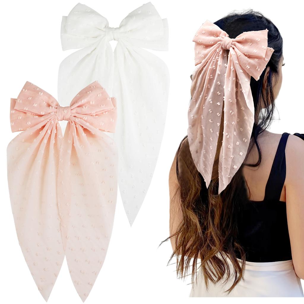[LONG-TAIL HAIR RIBBONS]: Bows clips featured with big bow and long tail, metal clip keeps hair securely in place, hold the thick or curly long hair well