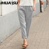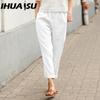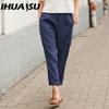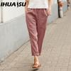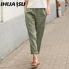 IHUASU Dámské letní jednobarevné kalhoty s dvojitou kapsou volné dlouhé kalhoty dámské bavlněné lněné kalhoty