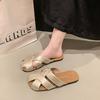 2025 summer new retro bag head half slippers open-toed wear breathable one-word drag female lazy flat-bottomed muller shoes