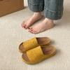 Retro niche yellow frosted leather one-word open-toed platform slippers women's summer wear casual shoes cool slippers