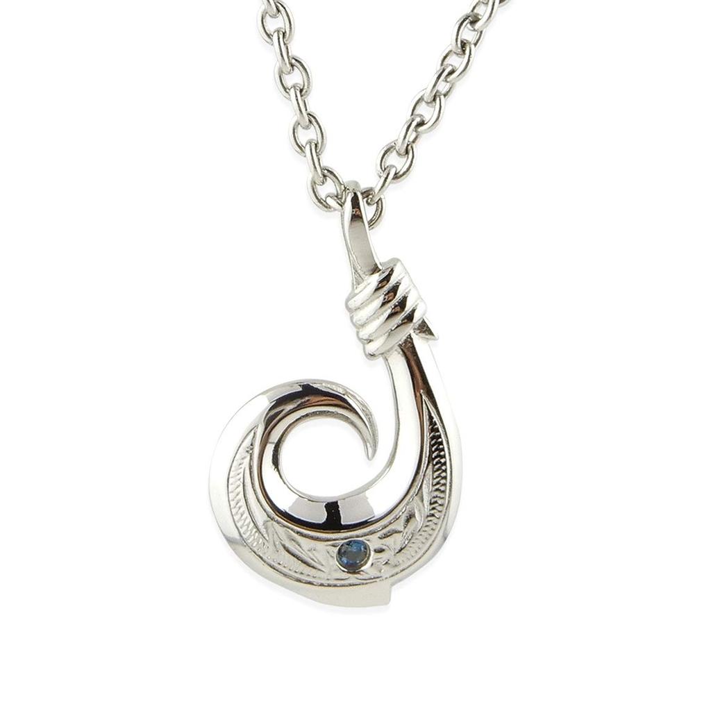 Havajský šperk náhrdelník chirurgická nerezová ocel srdce přírodní safír rybí háček plumerie svitek azuki řetízek ocel šířka 50cm [Aloha lokahi]