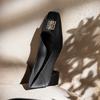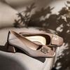 Sheepskin square buckle thick heel medium heel high heels women's square head grandma shoes two wear can step on the heel single shoes soft leather