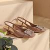 Patent leather rhinestone square buckle single shoes women's thick heel square head sheepskin middle heel back strap Mary Jane shoes summer
