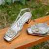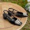 Fairy Feng Shui Diamond Square Buckle Baotou Middle Heel Sandals Female Summer New Square Head Empty Skirt