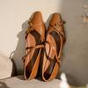 Sheepskin cross-buckle Mary Jane shoes women's square head flat bottom low heel one word with single shoes versatile temperament