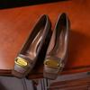 Commuter sheepskin temperament. CM high-heeled single shoes women's versatile square head metal buckle matte thick heel shallow mouth
