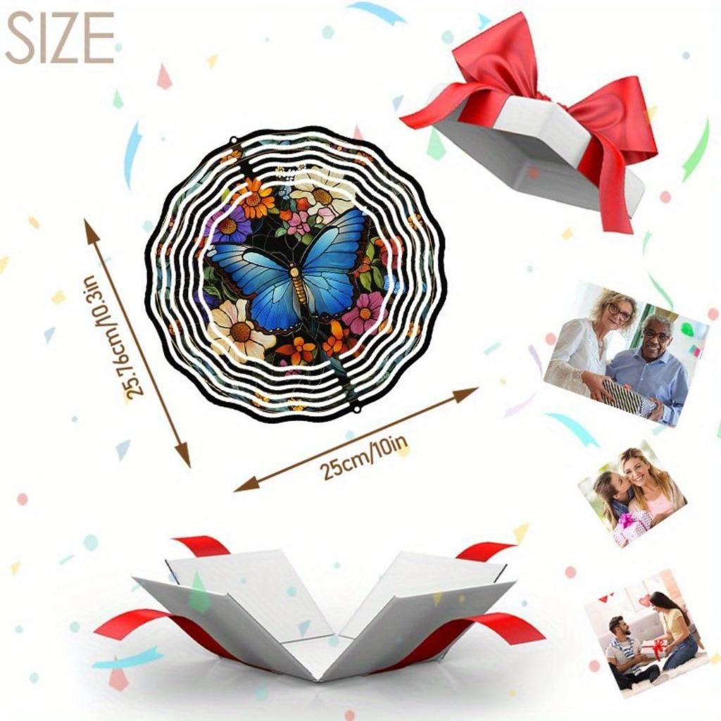 1pc Blue Butterfly & Floral Mandala Wind Chime - 2D Printed, No-Battery Metal Art for Outdoor, Garden, Balcony Decor - Elegant Hanging Ornament