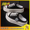 Baotou canvas half slippers women's new 2025 summer wear thick bottom heightening casual lace-up small white cool slippers