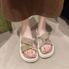 Muffin platform slippers women's new country pearl cross fashion outer wear one word skirt beach cool slippers