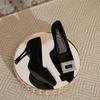 Celebrity rhinestone square buckle high heels women's waterproof table thin heel pointed single shoes black suede professional commuter work shoes