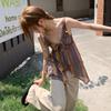 Modré pruhované kalhoty s širokými nohavicemi pro ženy - Korejská minimalistická estetika Ležérní kalhoty | Letní tenké Ležérní volné Rovné nohavice po zem