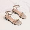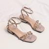 2025 new summer fairy style black thick heel medium heel sandals female rivets one word with fairy style high heels