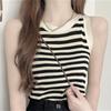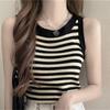 Letní korejské pruhované pletené tílko dámské kulatý výstřih bez rukávů slim tílko