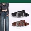 Women'S Leather Belt Personalized Retro Style Carved Needle Buckle Skirt Decorative Belt Women