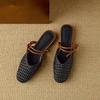 Krazing Pot Microfiber Mules Weaving Summer Size 41 Low Heels Slingback Party Shoes Women Square Toe Gladiator Hollow Out Pumps