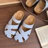 Vintage niche cross with bag head and half slippers, women's summer wear a pedal, hollowed out imitation leather, ugly and cute