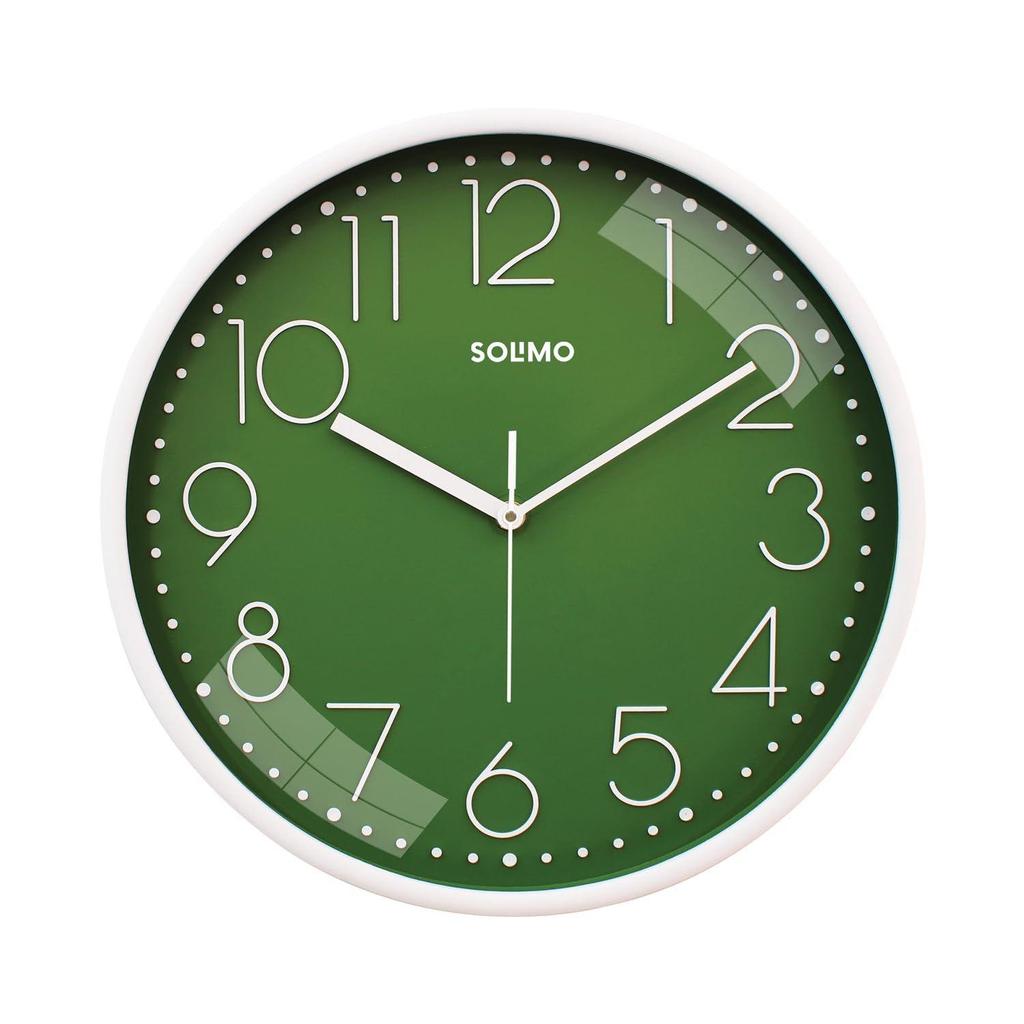 Plastové analogové nástěnné hodiny, Quartzový strojek, Tichý chod, Moderní embosovaný ciferník, Snadno čitelný ukazatel času (30 cm x 30 cm, zelená)