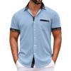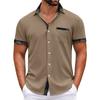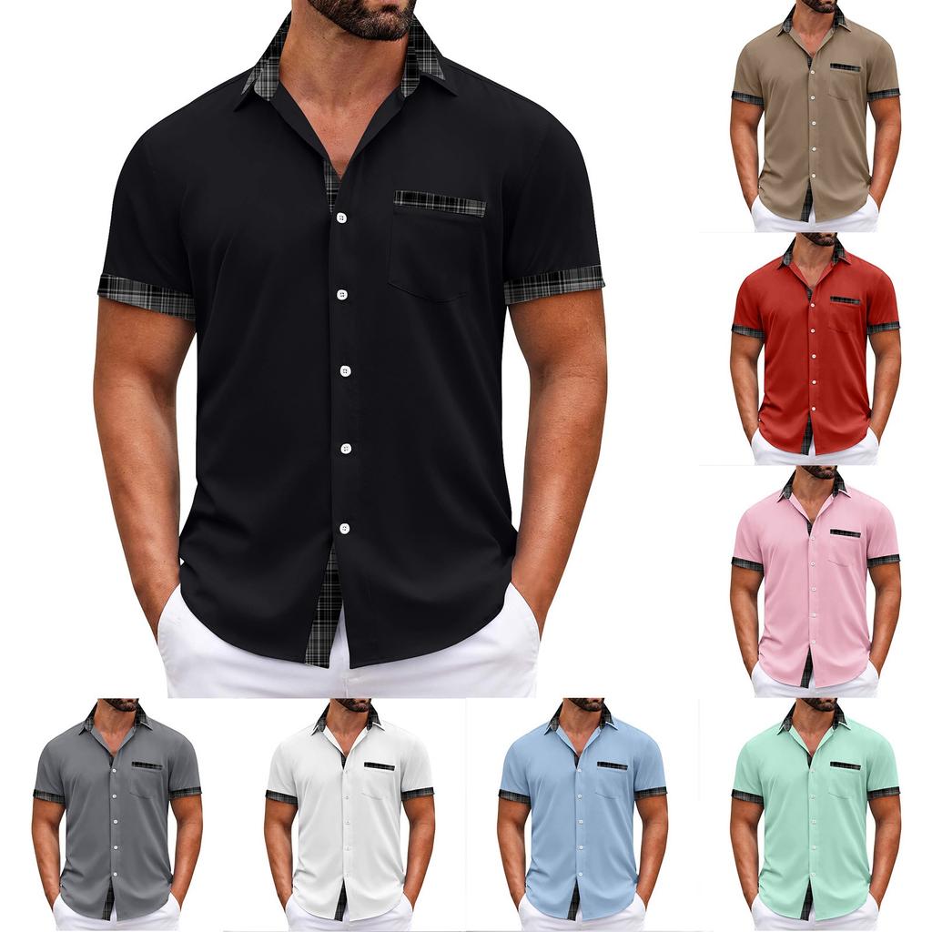 Pánské kostkované košile s krátkým rukávem s potištěným knoflíkem Pánská móda pro volný čas Košile s krátkým rukávem