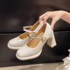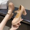 Small man with shallow mouth Mary Jane single shoes women's new spring and summer square head fashion thick heel high heels