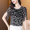 Thin French Floral Shirt for Women's Summer New Fashion Chiffon Blouse Short Sleeved Bottoming Top M-4XL