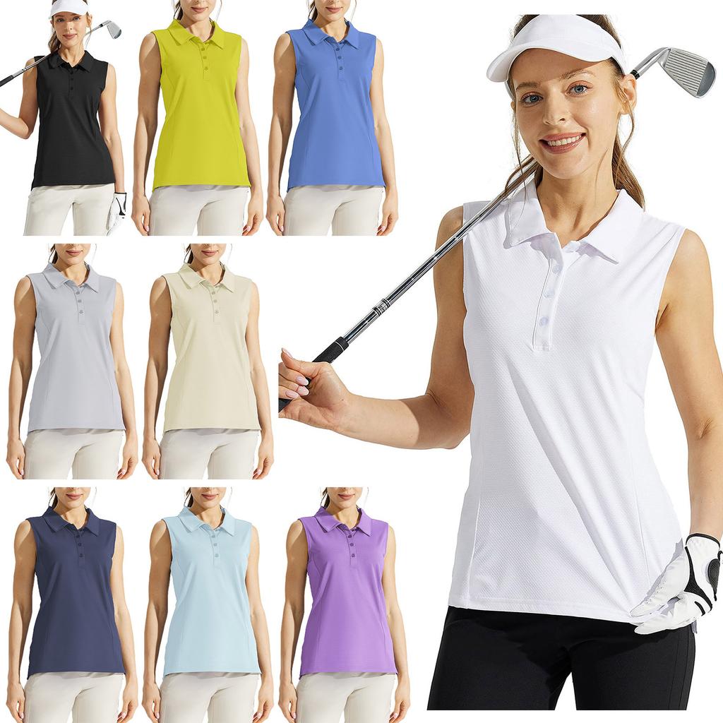 Women's Quick-Drying Golf Shirt Sleeveless - XS-XXL Turn-Down Collar Button Tank Top for Tennis Workout Athletic