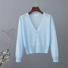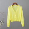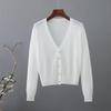 Dámský jarní/letní opalovací ležérní pletený kardigan s výstřihem do V, jednořadým zapínáním, dutý, tenký kabát
