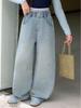 Dívčí džíny se širokými nohavicemi Jaro a Podzim Dívčí volné Internetová červená Retro modrá Rovná trubka Dětské kalhoty