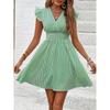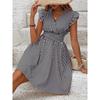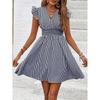 Summer Women loose Beach Sundress stripe Dress Ruffle Sleeve Sweetheart Pleated Mini Dress Elegant black dresses