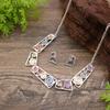 New color painting oil hollow geometric round stud earrings necklace set, women's exaggerated square necklace.