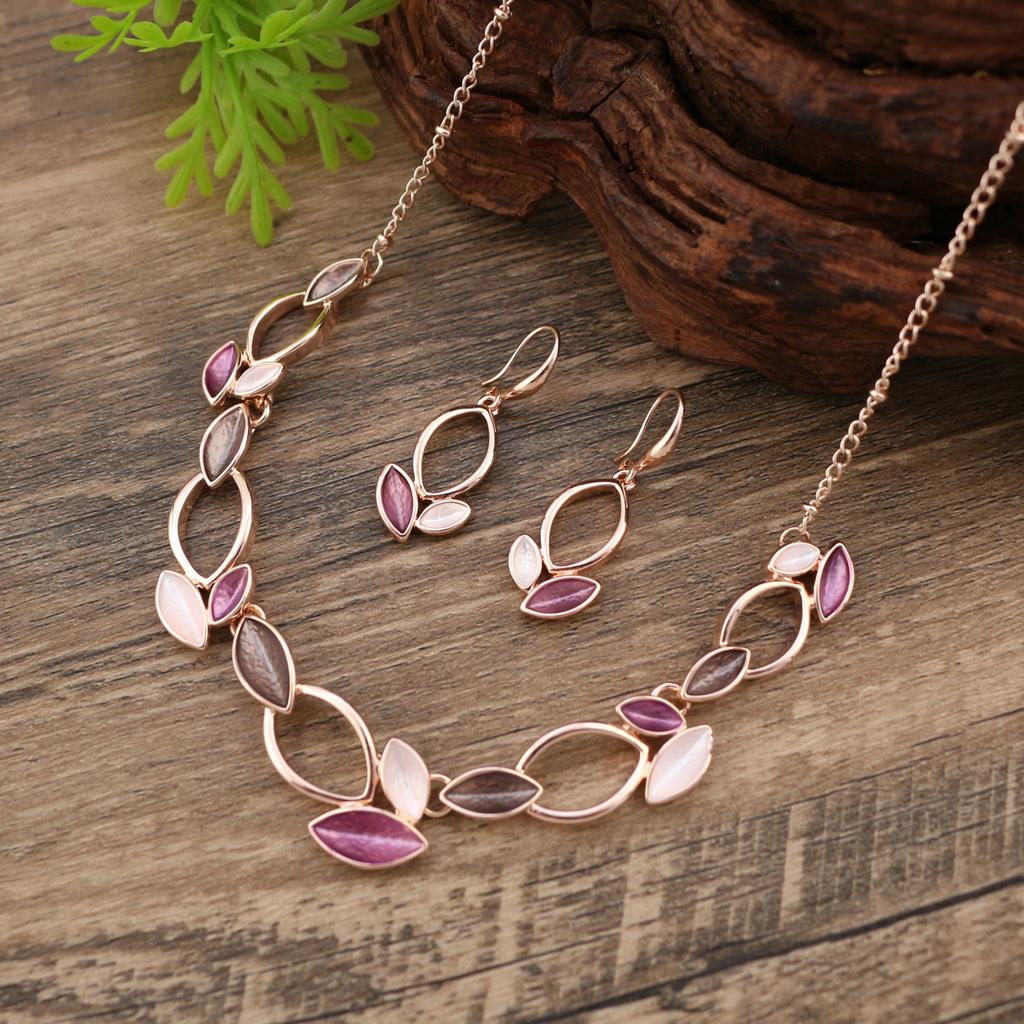 Enamel Petal Earrings Necklace Set, Flower Style Women's Earrings