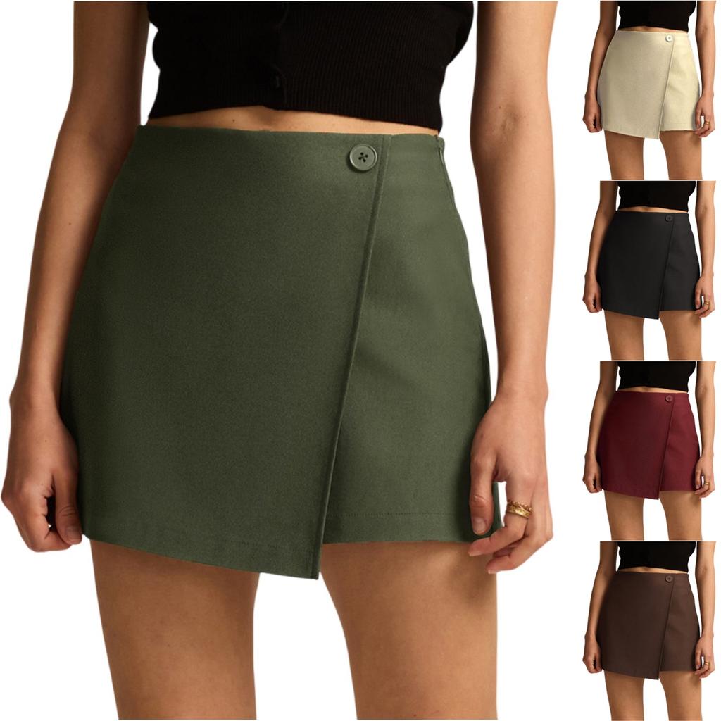 Women's Fashion Solid Color Irregular Skirt Pants High Waisted Zipper Button Shorts