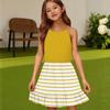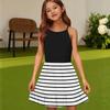 Dětské letní ležérní módní šaty bez rukávů s kulatým výstřihem a jednobarevné