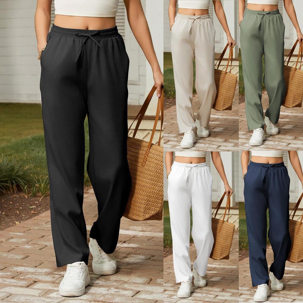 Dámské kalhoty se stahovací šňůrkou v pase, elastické s vysokým pasem, na cvičení, ležérní kalhoty