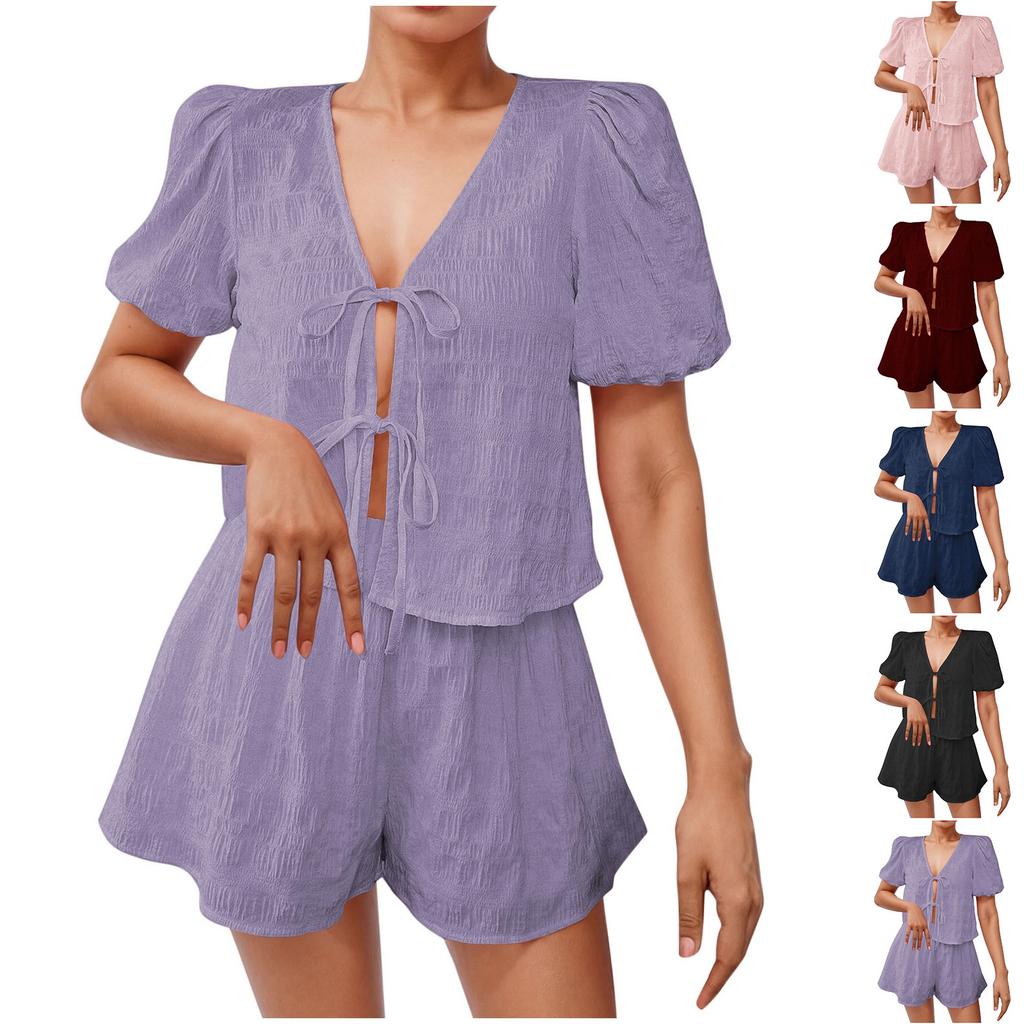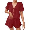 Women's Loose Casual Solid Color Short Sleeve Top Loose Shorts Set
