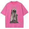 Dámské tričko ve stylu hororového filmu, praná džínovina, potisk lebky, nadměrné volné s polovičním rukávem, high street top