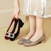 High heels women's thin heels red wedding shoes new square head middle heel women's shoes rhinestone square buckle small heel shoes