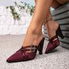 Ladies Burgundy High Heels Party Fashion Special Shaped Heels Pointed Diamond Buckle High Heel Sandals Women's Shoes