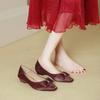 Low-heeled single shoes women's new soft leather light-mouth red women's shoes are not tired, square-headed thick-heeled shoes