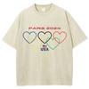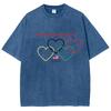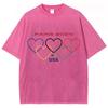 Five Colorful Hearts Print Women's T-Shirts Loose Wash Oversized Short Sleeve Trendy Brand Street Tops